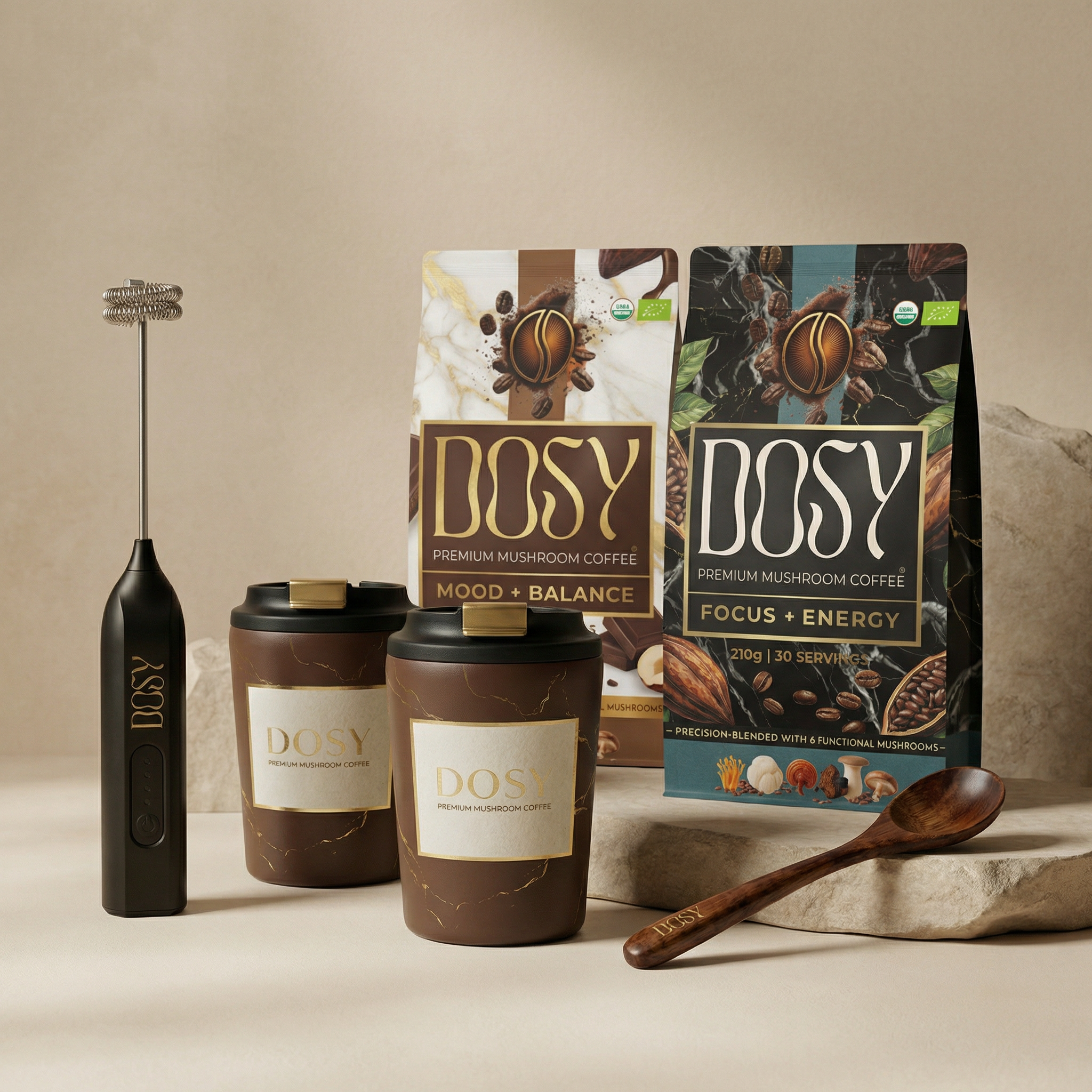 Step into the future of functional wellness with DOSY. Our Cognitive Blend harmonizes the ritual of coffee with the science of cognitive performance. Crafted for the modern achiever, this is bio-optimized fuel for deep work, creativity, and flow states.